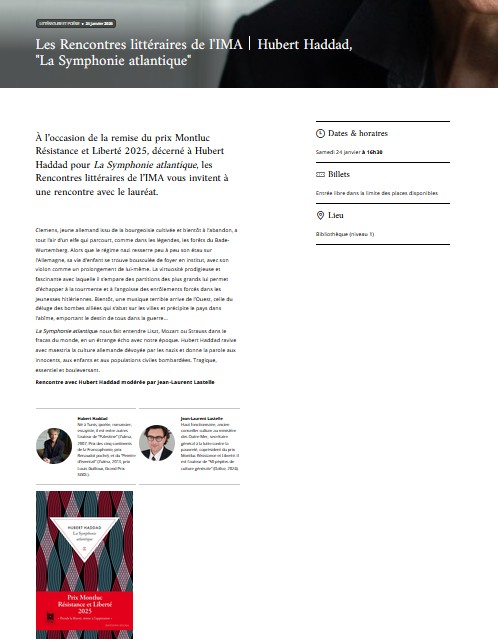 Le 24 janvier à 16h30 une rencontre Résistance et Liberté à l’Institut du Monde Arabe avec Hubert Haddad :